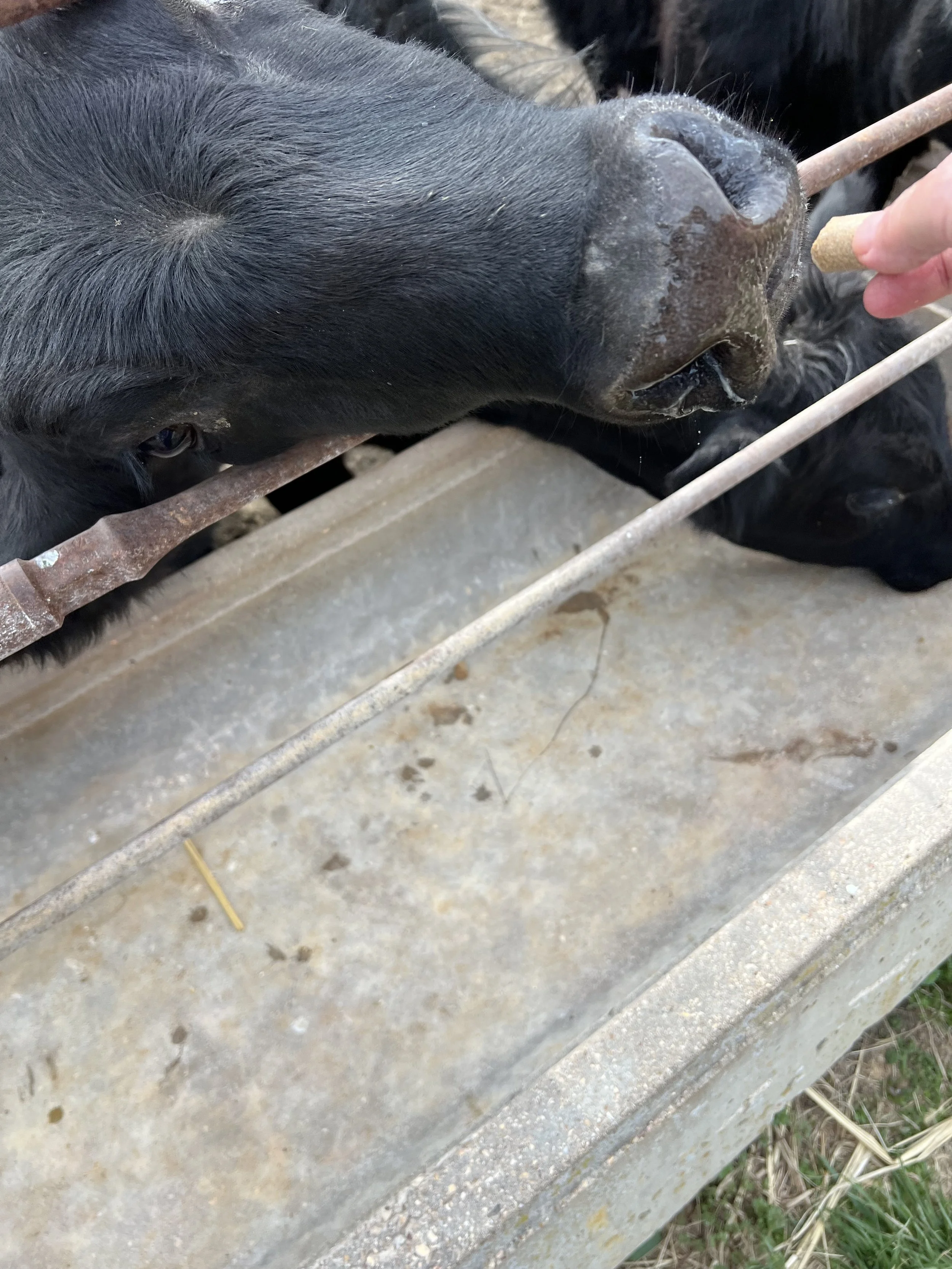 The girls are being spoiled and handfed and called to the bunks for snacks. We don’t like getting ran over by cows, so we raise and sell only gentle cows.