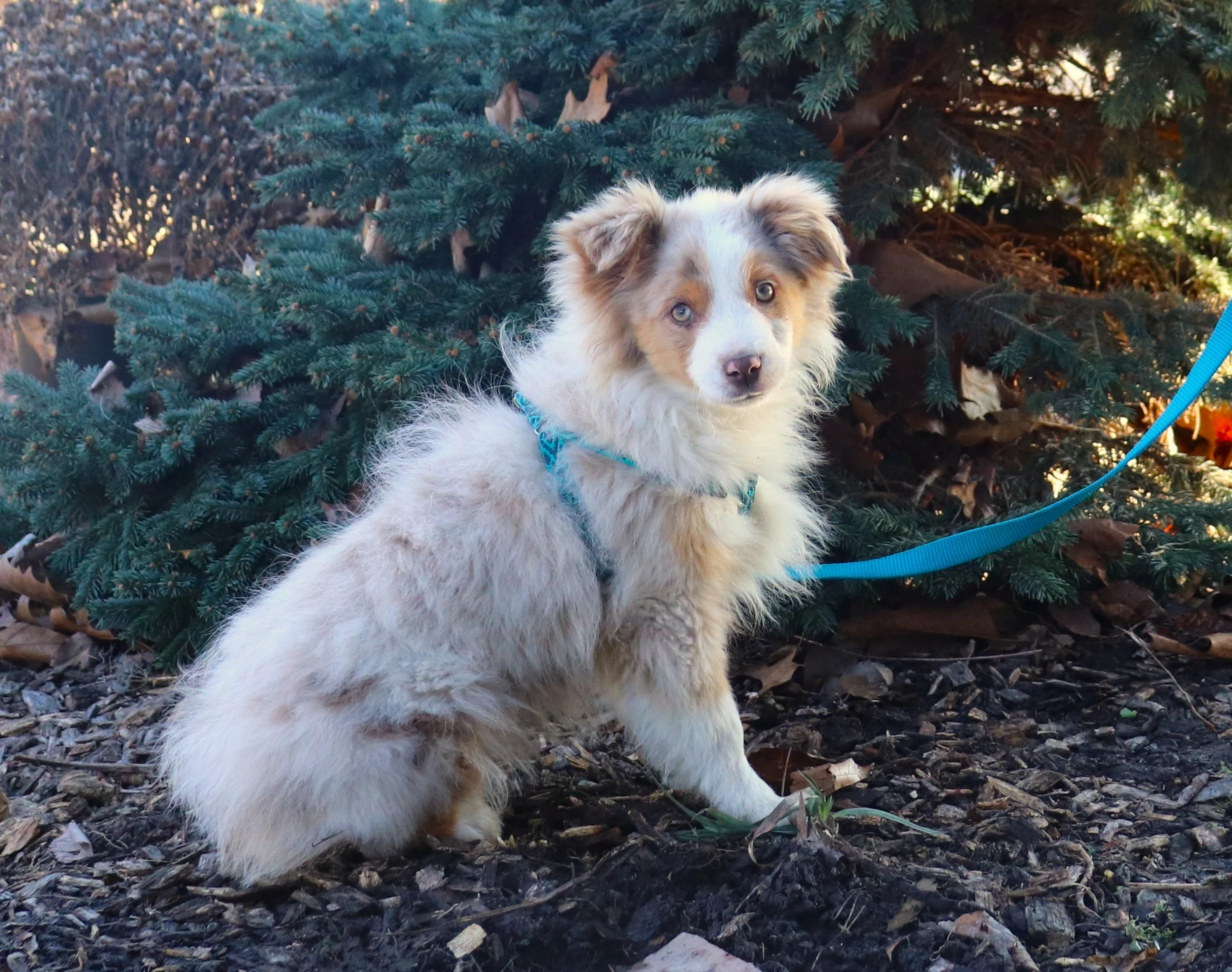 Here’s Squiggles! He is the cutest little Miniature American Shepherd you ever saw!